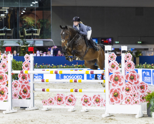 Annelinde Hoving was zojuist met de zevenjarige KWPN-merrie Oleta (v. Zirocco Blue) de sterkste in de IB makelaars Prijs op Jumping Amsterdam.