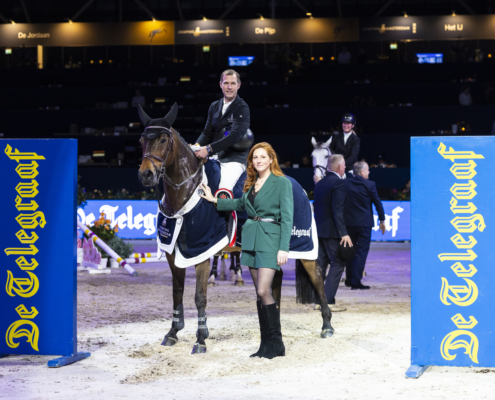 Siebe Kramer won vanmorgen de openingsrubriek van Jumping Amsterdam 2026, de Telegraaf Prijs.