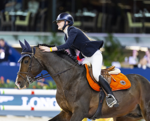Lara van Nek trok vanmorgen de overwinning naar zich toe in de Lövsta Future Challenge International Tour U25-Grand Prix op Jumping Amsterdam.